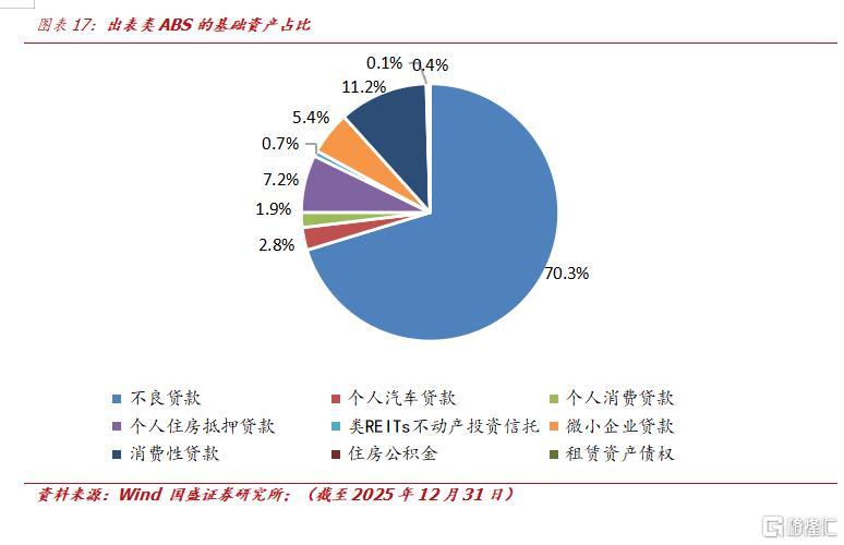 截至2025年12月31日,全市场存量ABS覆盖的基础资产种类已达42种。尽管资产类型繁多、结构复杂,但各类基础资产的创设本质大多服务于交易结构搭建,最终实现底层资产风险与收益的匹配传导。当前国内ABS市场尚未完全实现纯资产信用融资模式,全市场出表类基础资产规模占比仅4.6%,且主要集中在不良贷款、消费性贷款和个人住房抵押贷款领域,绝大多数产品仍无法脱离发行人主体信用加持。因此国内ABS形成了基础资产和主体信用双维度的核心评估逻辑。这一双维度评估的权重并非固定,而是随基础资产类型、产品结构设计、监管口径等维度呈现差异化。