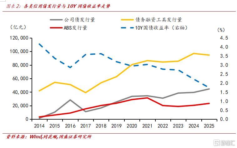 信用债天然具备顺周期属性。而ABS存在的前提是对已经形成、能产生稳定现金流的存量资产进行证券化实现融资。处于投融资周期的下游环节,更多扮演逆周期的互补角色,在信用收缩期成为企业盘活存量、缓释流动性压力的重要工具。
