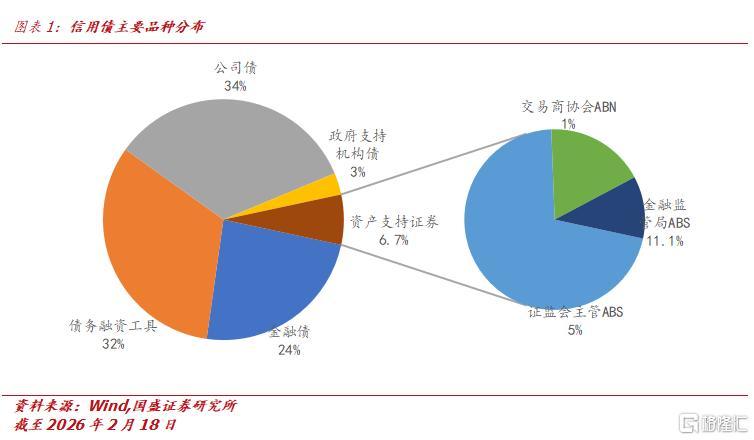 “十五五”规划建议明确提出“稳步发展期货、衍生品和资产证券化”。作为资本市场的舶来品,资产证券化(ABS)起源于美国的住房抵押贷款证券化,在我国经历了本土化再造。核心在于通过结构化设计,将缺乏流动性的资产转化为可交易的标准化证券,实现表外融资与风险隔离。伴随着我国投融资周期的演变,ABS逐渐走出了具有中国特色的发展路径。与海外模式相比,最显著的特征在于ABS本土化过程中强化了抵质押的融资属性,兼具盘活存量、优化金融结构的作用。截至2026年2月18日,全市场资产支持证券存量余额为36,108.8亿元,在整个信用债市场份额占比约6.7%,相对其他品种较小众。其中以证监会主管ABS为主,占ABS市场存量的71.1%。